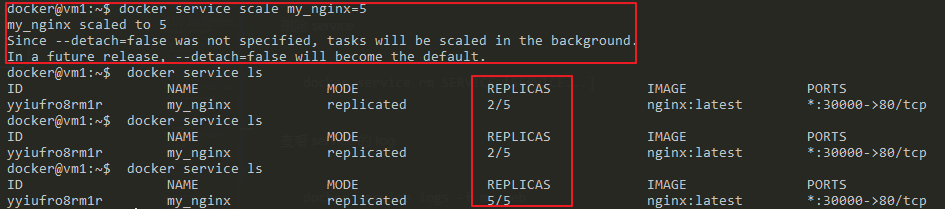 對於每一個 service,你可以宣告要執行多少數量的任務,當你 scale up or down 的時候,swarm manager 會自動增減來保持所需的狀態。