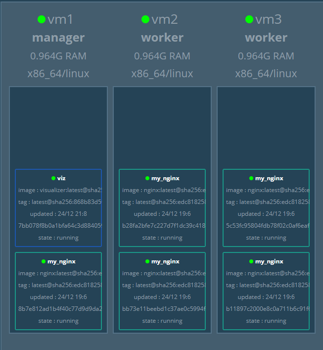 swarm manager node 會一直監控 cluster 狀態,保持你所需的狀態。舉個例子,假設你設定一個服務有十個 replicas,其中有一台 worker machine 死了兩個 replicas,swarm manager node 會再指派給可運作的 worker 兩個 replicas,保持服務有十個 replicas( 保持你所需的狀態 )。