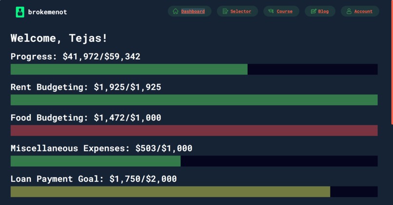 BrokeMeNot.us is a web application conceived by visionary high school seniors eager to simplify the financial maze of college. Designed as a comprehensive platform, it offers students the ability to connect or establish a Capital One account, monitor transactions, and manage their budgets effectively. Beyond mere financial tracking, the platform educates users with financial literacy articles and blogs, and aids in finding the most suitable student loans. Built with the innovative Taipy framework and enriched with APIs like Twilio and Capital One, it promises an elegant user experience. As the creators look ahead, they envision integrating AI-driven chatbots and personalized financial recommendations, making it an indispensable tool for college-bound students.