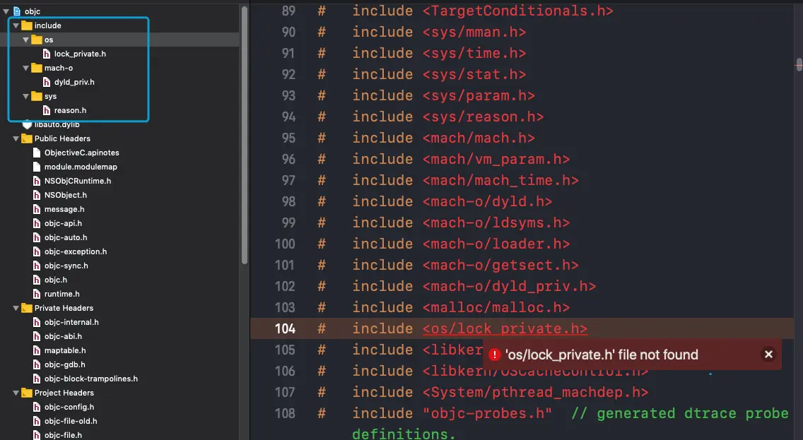 4)在objc-os.h头文件中报'os/lock_private.h' file not found错误