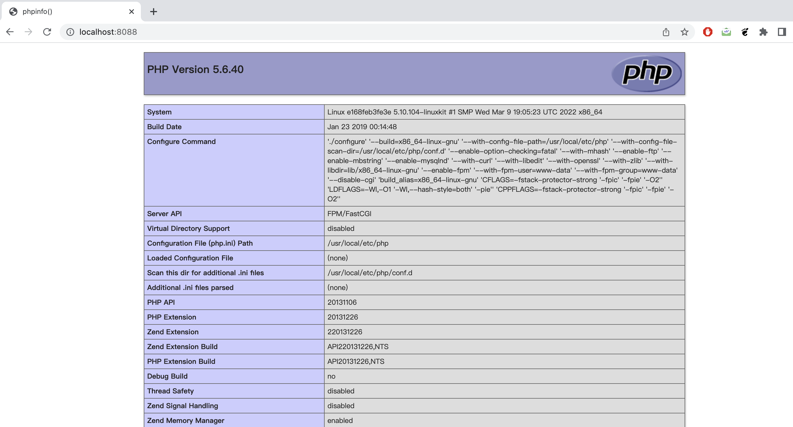 ,看到以下畫面表示PHP環境建置成功 - 開啟瀏覽器,前往