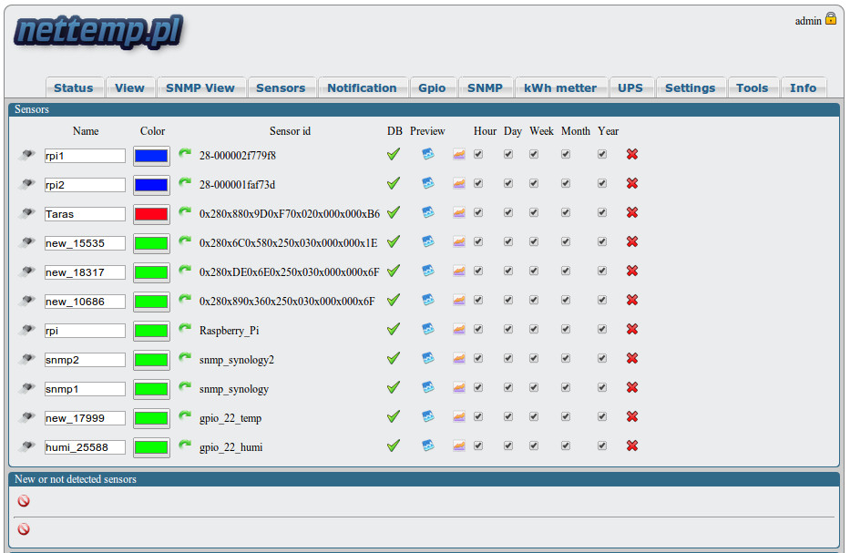 Read temp 1-wire sensors from DS18b20 over GPIO4 and DS2482 over I2C, humidity DHT11, DHT22 over GPIO, servers temperature over SNMP