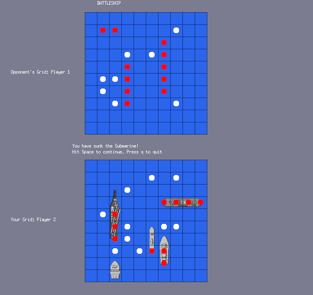 Written in C, this program is an interactive simulation of the board game BATTLESHIP. The game is designed for two people to play against each other. The players interact with the game via keyboard and mouse input. The project was accomplished by employing various functions, arrays, and pointers. Finally, the graphics window of the game displays the board, hits, misses, and pictures of the ships. The graphics library used (gfx) was created by the Notre Dame CSE department and is based on X11.