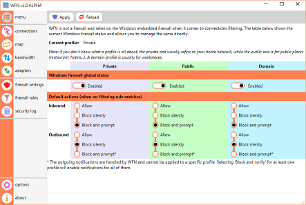 WFN started as a hobby around 2010 and is an "extension" to the embedded Windows firewall, offering real time connections monitoring, connections map, bandwidth usage monitoring...
