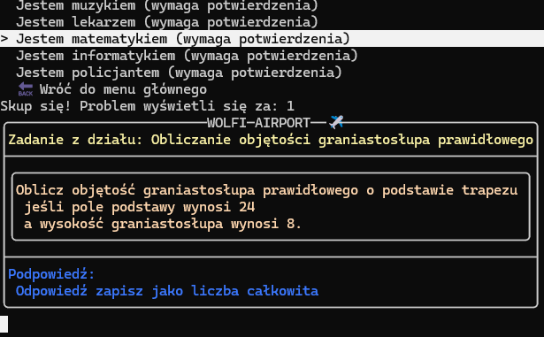 Weryfikacja zawodu wiąże się z rozwiązaniem problemu matematycznego. Wyświetla się pytanie, na które użytkownik musi podać poprawną odpowiedź, zgodną z wyświetloną podpowiedzią.