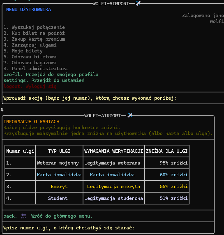weteran wojenny,karta inwalidzka,emeryt, zostaje mu przydzielone miejsce ewakuacyjne - W przeciwnym wypadku natomiast, jeśli użytkownik posiada w/w ulgi, aplikacja wyświetla zapytanie, czy użytkownik nadal chce zakupić bilet na miejscu ewakuacyjnym