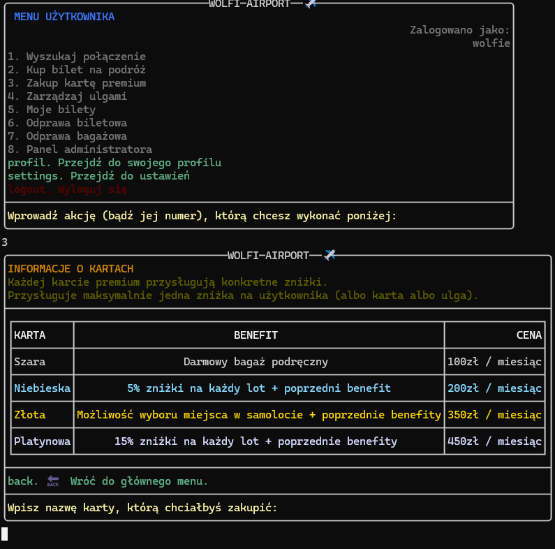 Jeśli użytkownik posiada, opisaną niżej, kartę premium: złotą lub platynową, przysługuje mu korzyść wyboru miejsc w samolocie.