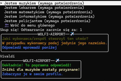 Weryfikacja zawodu wiąże się z testowaniem słuchu. Odtwarza się krótka część znanego utworu oraz zadaniem użytkownika będzie poprawne zgadnięcie wykonawcy/zespołu, który stworzył dany utwór.