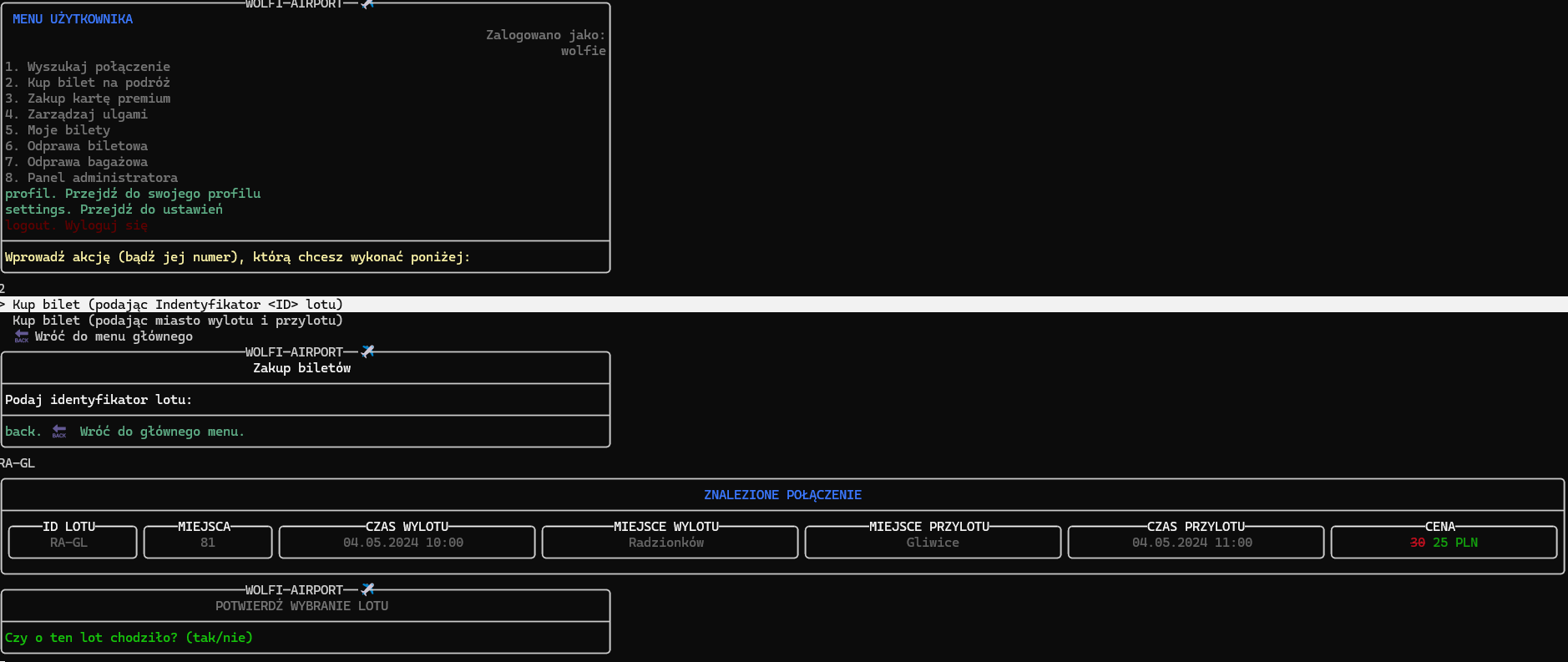 Przykładowo: jeśli korzystając z funkcji numer 2 podamy miasto wylotu i przylotu, aplikacja może zwrócić nam 2 połączenia, ale o innych datach. Zalecane jest więc korzystanie z ID lotu, które można otrzymać korzystając z wyszukiwarki lotów.