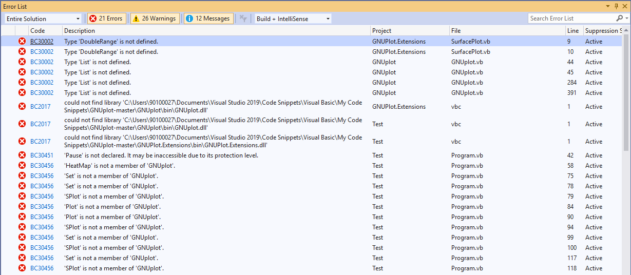Hello, I have installed gnuplot 5.2, and I can start the terminal. I downloaded the project GNUplot-master and open it with Visual Studio 2019. Unfortunately Test compilation fails.  Is there any other settings I am missing? Thank you for your help.