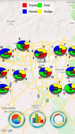 A Google Maps Android library to render marker clusters as charts categorized on the Google Maps Android with specified values.